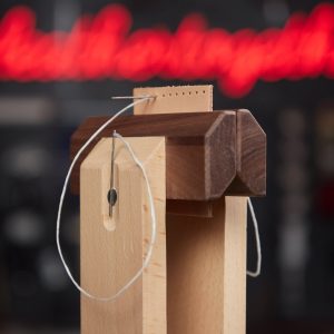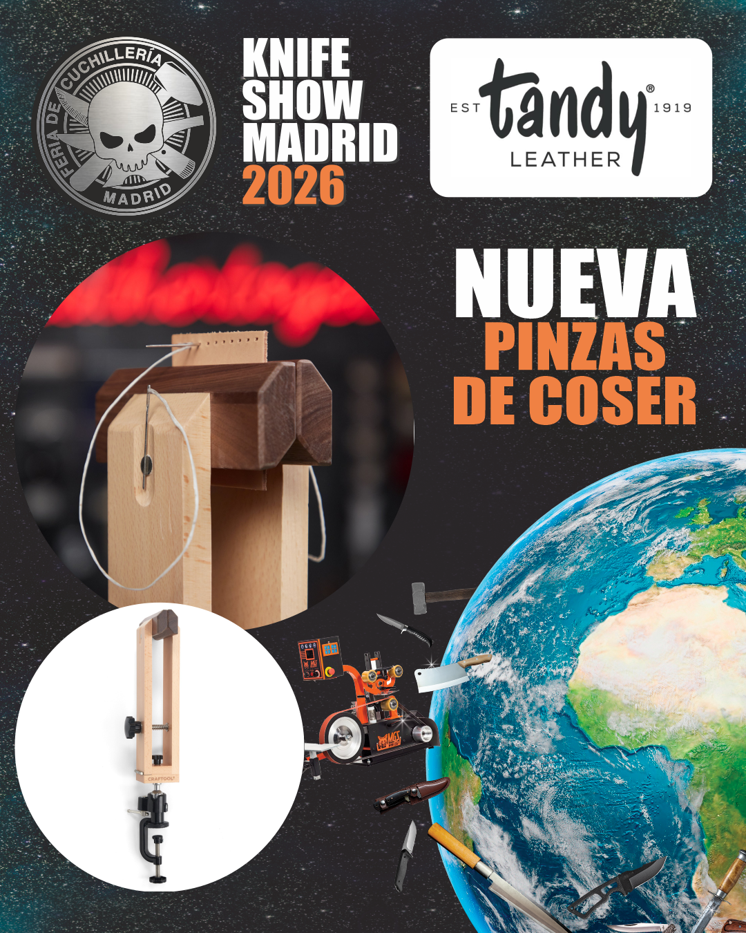 El cosido manual requiere que el artesano pase dos agujas simultáneamente a través del mismo orificio en direcciones opuestas. Si el artesano intenta sujetar el cuero con una mano y coser con la otra, la tensión del hilo será irregular y el ángulo de las puntadas será inconsistente. El uso de esta herramienta permite: